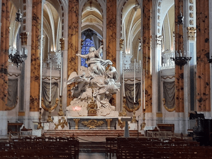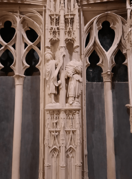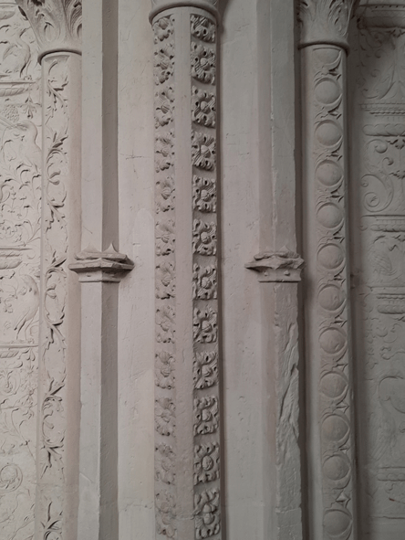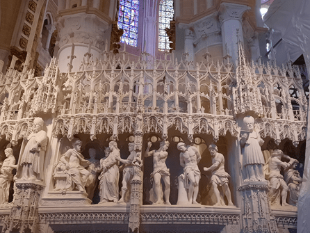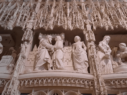 A maior parte das esculturas é consagrada à história da Virgem Maria, mas há algumas cenas de cotidiano da Idade Média. Os escultores foram os mesmos de Versalhes, durante certo tempo, porque esse trabalho se prolongou muito além das vidas de seus artífices, pois a última fase do trabalho foi concluída em 1716.