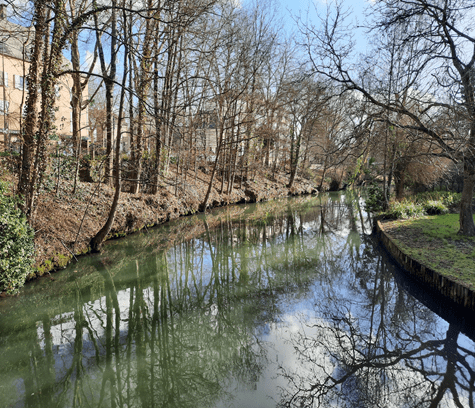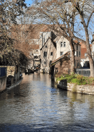 Outra delícia em Chatres é percorrer o Rio Eure, que corre por fora da antiga muralha. Ao longo dele, até o século XX, localizavam-se indústrias têxteis e de vitrais. Hoje estão moradias tranquilas, alguns sobrados que devem ter sido recuperados e, talvez, sejam ocupados hoje pelos parisienses que resolveram sair da metrópole; outros pequenos prédios destinados a segmentos médios; um outro restaurante.