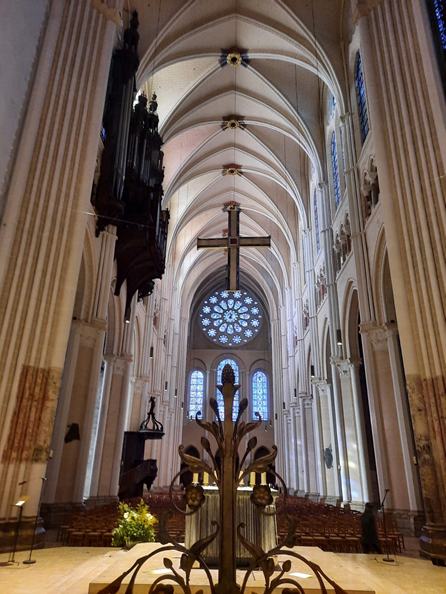 Externamente, o fato de que suas duas torres são completamente diferentes entre si foi o que mais chamou minha atenção. Gera um pouco de incômodo inicial, porque sempre se espera equilíbrio na arquitetura gótica, mas, depois, a gente assimila como um charme adicional.