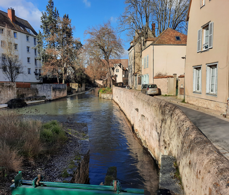 Outra delícia em Chatres é percorrer o Rio Eure, que corre por fora da antiga muralha. Ao longo dele, até o século XX, localizavam-se indústrias têxteis e de vitrais. Hoje estão moradias tranquilas, alguns sobrados que devem ter sido recuperados e, talvez, sejam ocupados hoje pelos parisienses que resolveram sair da metrópole; outros pequenos prédios destinados a segmentos médios; um outro restaurante.
