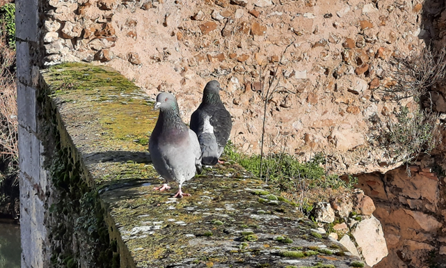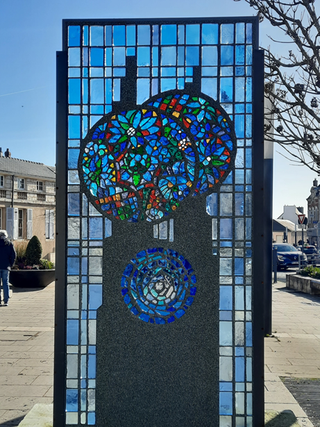 Eu ia fazer, ainda, referência às bonitas vitrines do comércio de Chartres, mas vou deixar isso para um capítulo especial sobre o tema, misturando as fotos daqui a outras cidades da metrópole parisiense. Para encerrar, os vitrais modernos que mantêm a tradição de Chartres, enfeitando seu espaço público, e as pombinhas que passeiam, calmamente, no que sobrou da muralha que protegia a Chartres medieval. Apenas aproveitam o sol do inverno, uma raridade por aqui, sem saber dos séculos a partir dos quais essas pedras olham para elas.