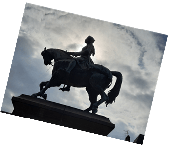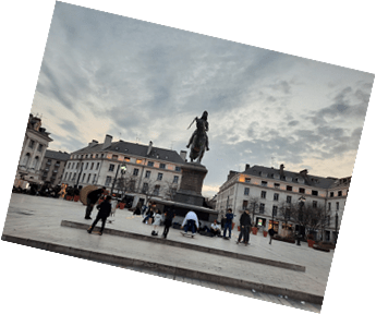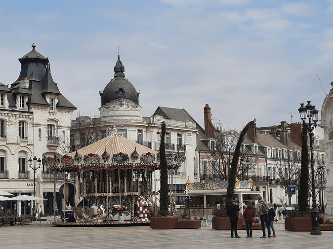 Na Place de Martroi, onde está a estátua da heroína no cavalo, essa rua se encontra com a Royale e o largo espaço livre possibilita que apreciemos o carrossel, uma marca das cidades francesas, e algumas construções muito bonitas que foram residências e agora são ocupadas por atividades comerciais e de serviços, integralmente ou, ao menos, no térreo.