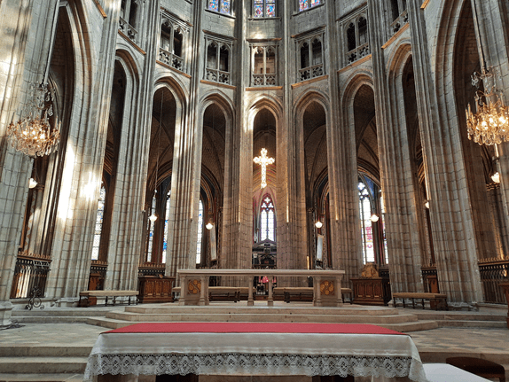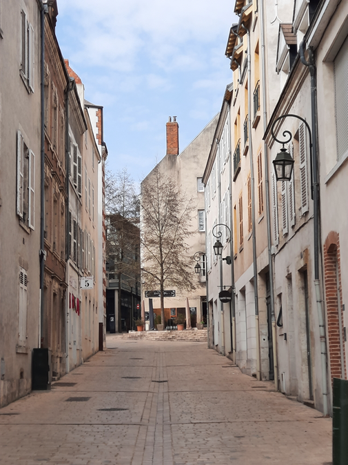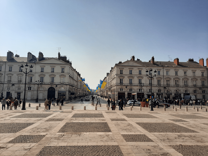 Em frente à Catedral, abre-se a Rua Jeanne D’Arc (ela de novo), bastante imponente pela visão que oferece da magnífica igreja. Ao longo dela, o comércio se estende, com calçadas que convidam à caminhada. Em seu leito outra linha de tramway se impõe, e mais uma vez nota-se claramente a preferência pelos pedestres e pelo transporte público na definição dos usos dos espaços urbanos.