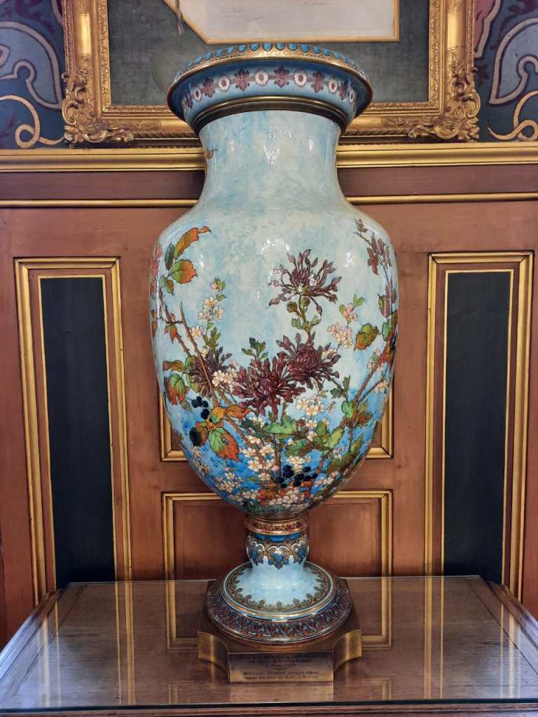 Também gostei muito de visitar o museu instalado no Hotel Groslot, onde antes funcionava a prefeitura de Orleans. O mobiliário está bem preservado e os lindos vasos de faiança, que adornam a sala principal, chamaram atenção, ao lado dos desenhos dos papéis de parede e das grades.