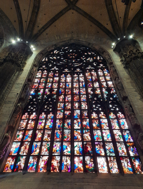 A catedral tem cerca de 40 vitrais. As minhas fotos ficam muito aquém da maravilha que eles são, tanto em tamanho, como na qualidade dos desenhos e detalhes de encaixes entre os vidros e ferragens. Daria para passar o dia olhando para eles.