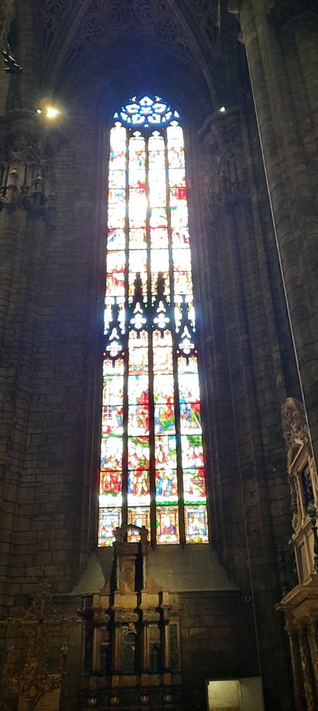 Nos folhetos que orientam os visitantess, há informações de que ela tem três mil estátuas entre as externas e as internas. Um dos seus ícones está na sua torre mais alta – a Madonina – uma Nossa Senhora toda dourada que é o ponto mais alto do centro de Milão, não podendo nenhum edifício, nesta área, ultrapassar sua altura.