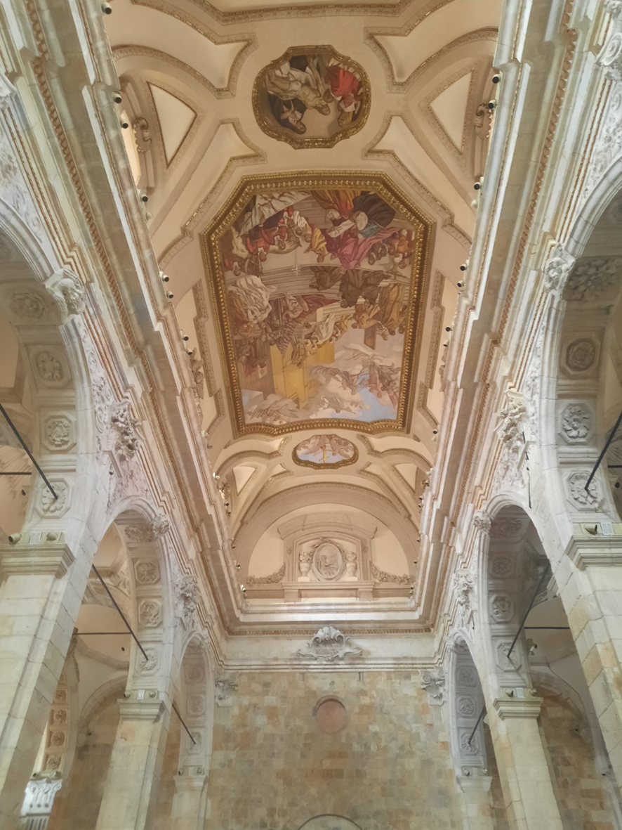 O teto também é lindo e os altares secundários nas laterais merecem igualmente destaque.