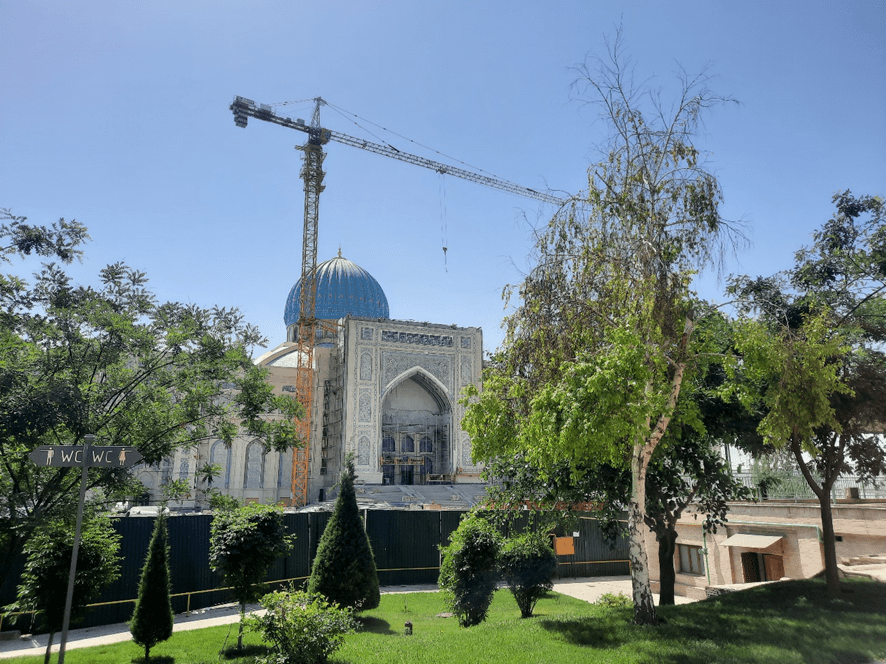 Bahram, nosso guia, explicou-nos que, durante o período soviético, as edificações antigas, em função do caráter religioso da maioria, ficaram abandonadas e, em volta delas, havia casas com gente vivendo ali. A partir da independência, essas moradias foram sendo compradas, demolidas e, nos espaços reunidos para compor áreas maiores, foram sendo plantados os jardins e criados os caminhos que interligam as joias do patrimônio uzbeque. Paralelamente, as edificações foram sendo recuperadas e impressiona muito a capacidade que tiveram de em 32 anos, desde a Independência, de realizar esse trabalho que é demorado e custa caro.