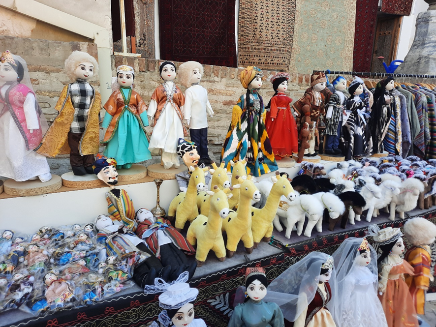E essa profusão de bonequinhas serão as que as meninas uzbeques brincam ou elas já preferem a réplicas da Frozen que minha neta tanto admira? Girafas amarelas e camelos branquinhos, será que atraem os meninos daqui?