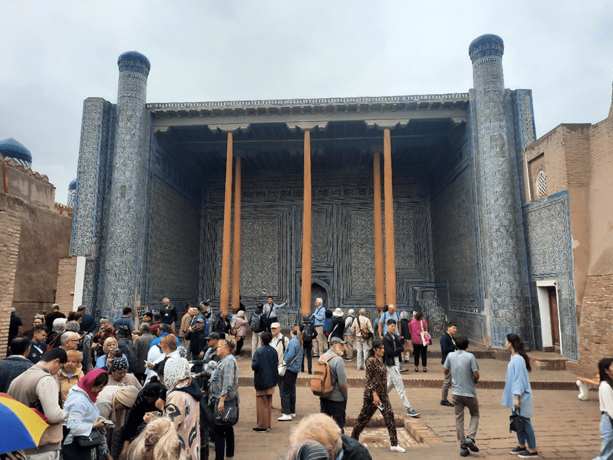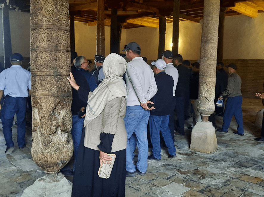 Em frente aos monumentos históricos de importância religiosa (quase todos), como uma das quatro portas que dão acesso à cidade antiga, sempre havia os uzbeques prontos para uma visita e uma foto de grupo.