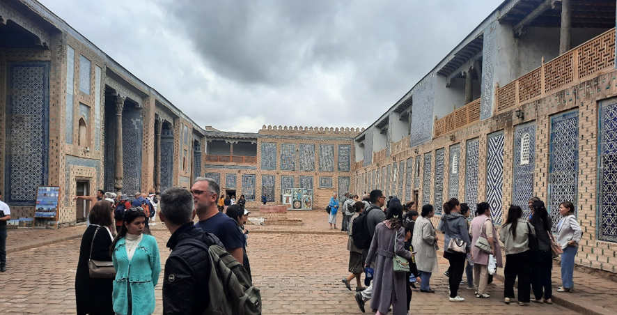 O passeio, no dia seguinte, começou com guarda-chuva, para depois continuar o dia todo com um céu nublado. Após as temperaturas elevadas que experimentamos em Samarqanda e Bukhara era um alívio poder caminhar sem sentir calor demais.