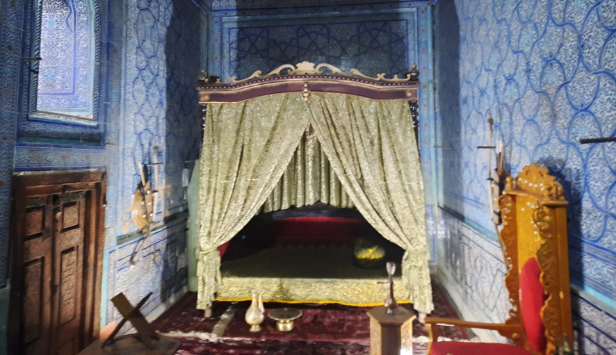 Na foto que se segue, aparece o pátio do harém: do lado direito, os aposentos das quatro mulheres oficiais, do lado esquerdo uma porção de salas destinadas às concubinas; em frente, ao fundo a alcova onde ele se encontrava com a escolhida do dia. Na próxima subsequente, a tal da alcova.