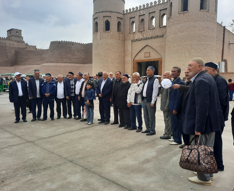 Em frente aos monumentos históricos de importância religiosa (quase todos), como uma das quatro portas que dão acesso à cidade antiga, sempre havia os uzbeques prontos para uma visita e uma foto de grupo.