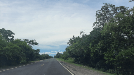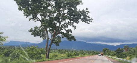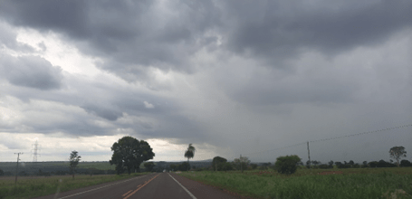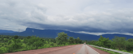 Saindo de Campo Grande, ainda predominam, por vários quilômetros, as grandes propriedades rurais, ocupadas pela pecuária predominantemente. Aos poucos, à medida em que nos distanciamos da cidade, as paisagens típicas do que se conhece como Cerradão ladeiam a estrada. O céu estava carregado e a sensação de calor era um pouco menor do que no dia anterior. Olhava para o painel do carro e as temperaturas oscilavam entre 33 e 35 graus.