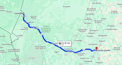 A travessia do Rio Paraguai a algumas dezenas de quilômetros de Corumbá impressiona pela sua largura e também porque a ponte se eleva, conformando um leve arco, provavelmente para possibilitar a passagem sob ela de embarcações grandes.