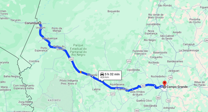 A travessia do Rio Paraguai a algumas dezenas de quilômetros de Corumbá impressiona pela sua largura e também porque a ponte se eleva, conformando um leve arco, provavelmente para possibilitar a passagem sob ela de embarcações grandes.