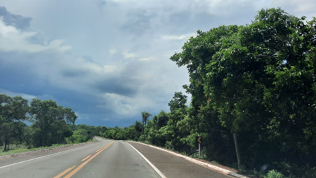 Saindo de Campo Grande, ainda predominam, por vários quilômetros, as grandes propriedades rurais, ocupadas pela pecuária predominantemente. Aos poucos, à medida em que nos distanciamos da cidade, as paisagens típicas do que se conhece como Cerradão ladeiam a estrada. O céu estava carregado e a sensação de calor era um pouco menor do que no dia anterior. Olhava para o painel do carro e as temperaturas oscilavam entre 33 e 35 graus.