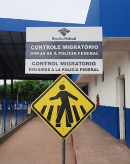 Esperamos 11h e voltamos para a fronteira. A fila estava andando. Que alívio! Na parede externa, havia um aviso mal colado com fita crepe sobre a lei brasileira que garante atendimento prioritário. Alguém entrou com um bebê no colo e resolvemos entrar na sequência. Eram três guichês. Eles estavam no ar condicionado e o aparelho que deveria refrescar o lado de cá do vidro estava ostensivamente desligado.