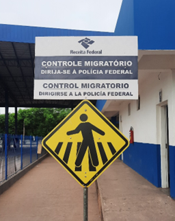 Esperamos 11h e voltamos para a fronteira. A fila estava andando. Que alívio! Na parede externa, havia um aviso mal colado com fita crepe sobre a lei brasileira que garante atendimento prioritário. Alguém entrou com um bebê no colo e resolvemos entrar na sequência. Eram três guichês. Eles estavam no ar condicionado e o aparelho que deveria refrescar o lado de cá do vidro estava ostensivamente desligado.