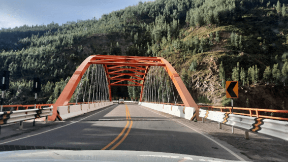 A estrada está assentada em um vale demarcado por elevações significativas dos Andes de um lado e de outro. Nos trechos em que ele é mais largo, sempre tem gente vivendo. Muitas vezes, as áreas de cultivo ladeiam a rodovia e as casas estão já no início dos aclives das grandes montanhas.