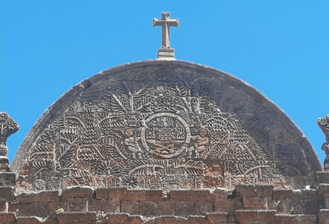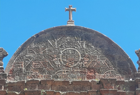 Essa cidade surpreendeu pela beleza de sua igreja principal, que é grandiosa e tem a fachada toda trabalhada em sobre relevos, alguns dos quais mesclam elementos do imaginário católico ao do indígena. Vejam os detalhes na terceira foto, na sequência.