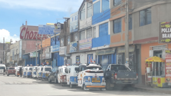 Estacionados, aguardando fregueses, há dezenas de tuk tuks em Juliaca, que, aqui no Peru, são chamados de moto táxis.
