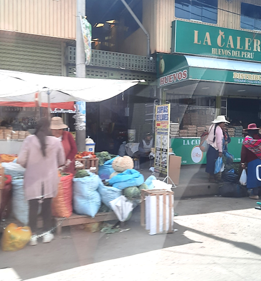 Impressiona muito, tanto no Peru como na Bolívia, a importância que tem o transporte por vans. Já escrevi sobre isso, no capítulo sobre La Paz e reforço aqui, descrevendo rapidamente Juliaca: a maior parte das vias está tomada por esses veículos que fazem tanto percursos urbanos, como interurbanos, visto que os agricultores que vêm vender seus produtos na cidade também utilizam esse modal, como já tínhamos observado nas rodovias onde as vans estão e param a qualquer aceno [Aproveitem para reparar, nas fotos, a confusão que é a fiação elétrica por aqui – deve ter muito gato].