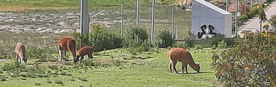 Da nossa janela, também vimos guanacos (ou seriam alpacas?) pastoreando no jardim do hotel.