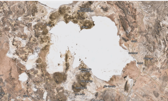 Pelo que li na web, em mais de um site, trata-se do mais alto deserto de sal do mundo, com 10 mil e tantos quilômetros quadrados, e está a mais de 3.600 metros acima do nível do mar. O brilho que ele tem e a lisura de sua camada externa serviram de orientação para os astronautas da Apollo 11, em 1969.