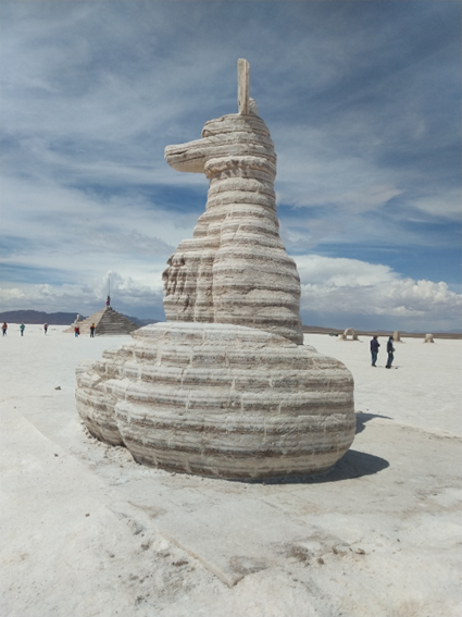 E é, com este material, que os moradores do povoado Colchani (procurem no mapa anterior, à direita da área do salar), também construíram uma série de esculturas que são visitadas pelos turistas logo na entrada do salar.