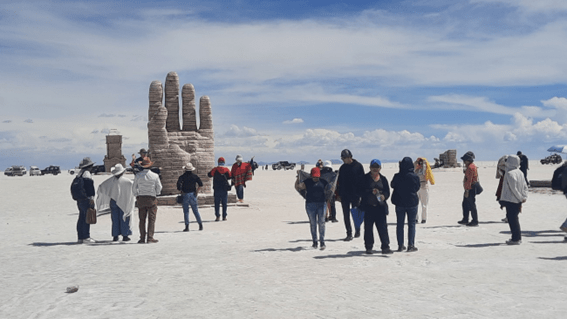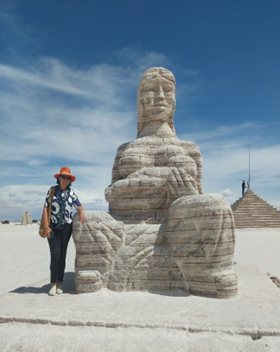 Dois dias depois de estarmos lá, vejo uma reportagem na Folha de São Paulo, informando que este salar foi eleito símbolo do turismo na Bolívia. Não é para menos. Se quiser conhecer mais sobre esse encanto da natureza, veja https://www1.folha.uol.com.br/folha/turismo/noticias/ult338u4783.shtml .