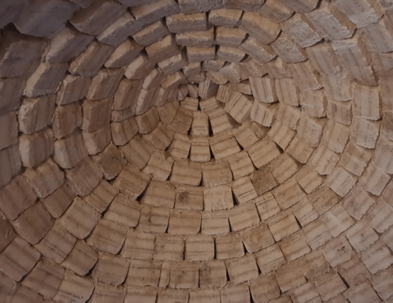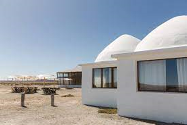 Por meio da foto da fachada, é possível ver as abóbadas que compõem os apartamentos e que, por dentro, estão alicerçadas nos blocos de sal.