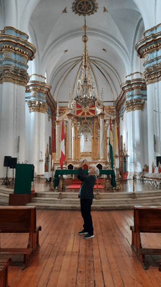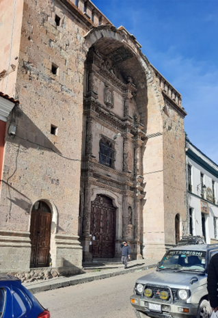 Esta como tantas outras na Bolívia e na Peru (aliás, como também nas cidades coloniais brasileiras) encontrava-se com as portas fechadas. Visitar estas igrejas é, por vezes, condição de sorte, por vezes, de oportunidade: se é feriado, não está aberta à visitação; se não é, a porta está fechada porque é hora de almoço; se são 9h15 da manhã, a próxima visita guiada ocorrerá somente às 11h00; ser quer mesmo visitar, seja rápido porque logo vamos fechar…. Haja persistência.