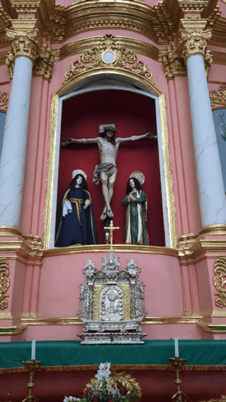 As informações obtidas é de que boa parte das obras de arte desta igreja foram feitas por indígenas, como tantas outras do Peru de Bolívia. Vejam que na fisionomia das estátuas e pinturas, é possível observar traços das etnias autóctones. Além do mais, notem, também, que algumas estátuas tem cabelos, que são naturais e não sintéticos. São cabelos de indígenas. Nada de madonas, apóstolos ou anjinhos loiros.