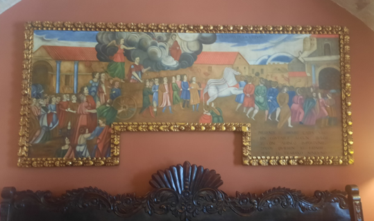 A fachada em branco com acabamentos em pedra compõe, sem muito destaque, a paisagem do centro histórico de Sucre. É capaz que você passando, a pé ou de carro, nem o notasse. Aliás, isso ocorreu conosco. Desse ponto de vista, é uma construção, embora grande, muito discreta, contribuindo para a harmonia das fachadas frontais que avançam até o limite das calçadas em toda a área central.