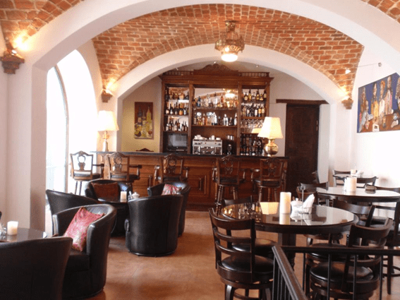 Fiquei em dúvida se o teto do bar em tijolo é o original de tão bem conservado que se encontrava. Vejam como é charmoso esse pequeno ambiente.