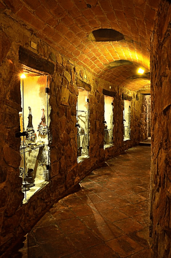 O ponto alto do hotel. na minha opinião, e que me teria passado despercebido não fosse a gentileza de Luís nos apresentar seu hotel, está no subsolo. Durante as reformas para recuperação das edificações descobriram que havia algo no porão. O maravilhoso corredor em pedras, onde acomodaram vitrines com lindas peças indígenas é um convite a se entrar na “cova”.