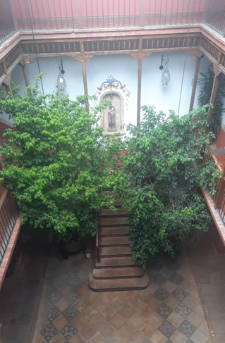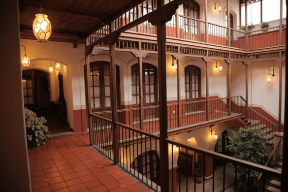 Com a junção das construções, alguns elementos, que são típicos da arquitetura colonial espanhola foram potencializados – três pátios internos, muitas varandas-corredores, maravilhosas estruturas em madeira para sustentar os telhados, escadas de pedra, vasos de barro tipo potes com plantas à sombra dos três pavimentos que o compõem etc.