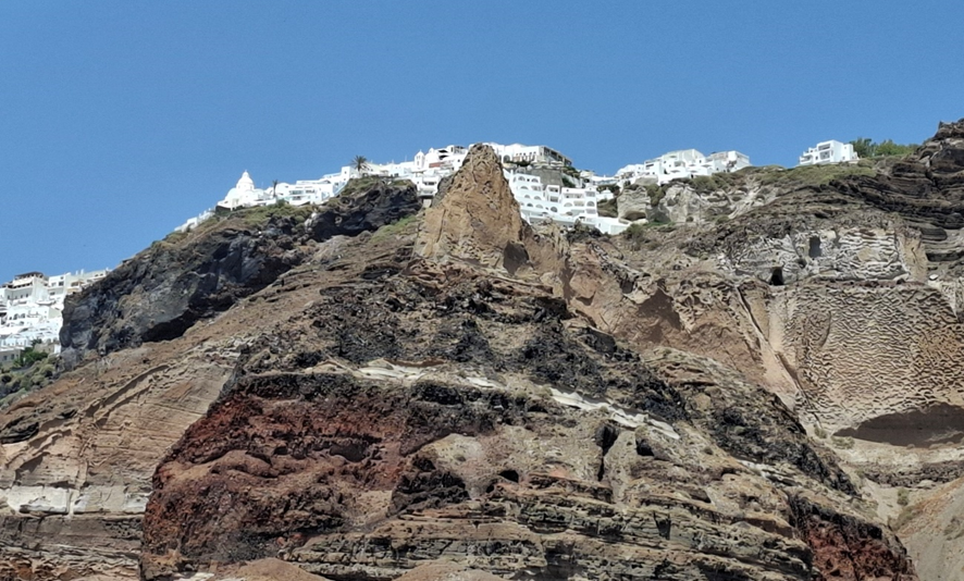 …o principal playground romântico da Grécia, com vilas e resorts luxuosos que oferecem refúgios cheios de mimos para celebridades e cenários de sonho para casamentos luxuosos e sessões de fotos. As íngremes falésias vulcânicas da ilha, situadas a cerca de 300 metros acima do nível do mar, criam uma impressionante obra de arte geológica, com casas caiadas de branco equilibradas nas beiradas. Não é à toa que é um dos locais mais fotografados do planeta (Fonte: https://www.cnnbrasil.com.br/internacional/vulcao-submerso-ameaca-santorini/)