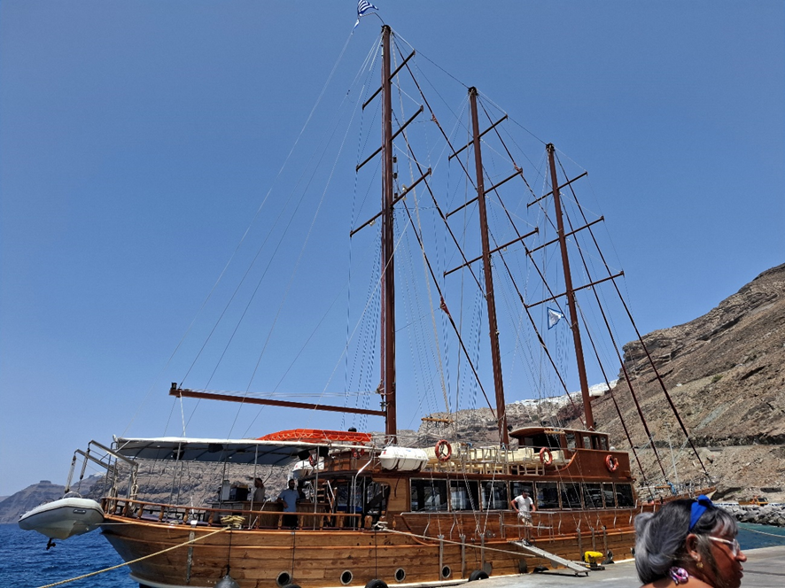 Para tornar nosso tempo mais exíguo, a agência incluiu, no nosso pacote, um passeio de escuna, que foi legal, mas demandou sete horas e isso significou menos tempo em Santorini.