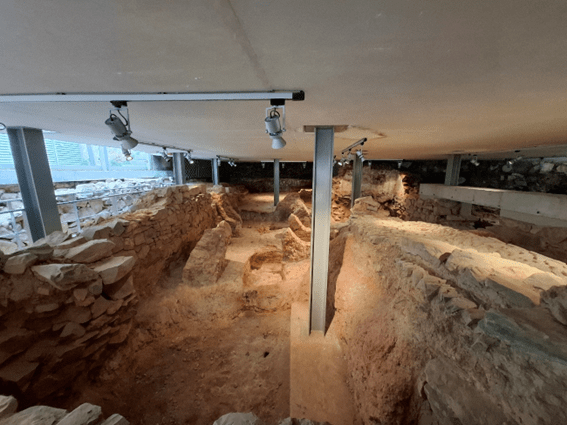 Caminhando sobre uma parte da muralha, a que se tem acesso pela torre, chega-se a um sítio arqueológico do período romano.