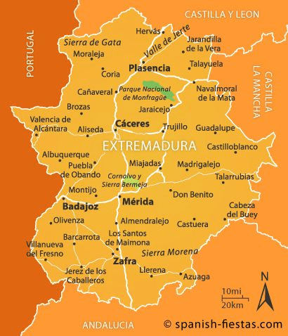 Situada na porção oeste da Espanha, na fronteira com Portugal, a Extremadura combina com o nome que tem. Parece mesmo uma região das extremidades do país Extrema e a arquitetura das cidades mais antigas, com seus tons cinzas-ocres, passa a ideia de uma paisagem urbana dura, o que se repete na área rural onde as rochas afloram em meio à vegetação pouco verde. No entanto, isso é apenas uma interpretação bobinha que eu fiz.