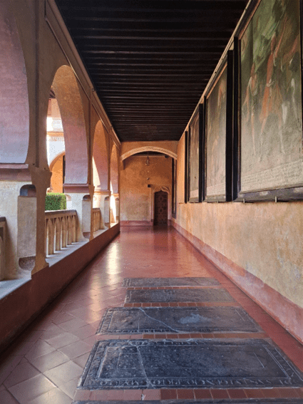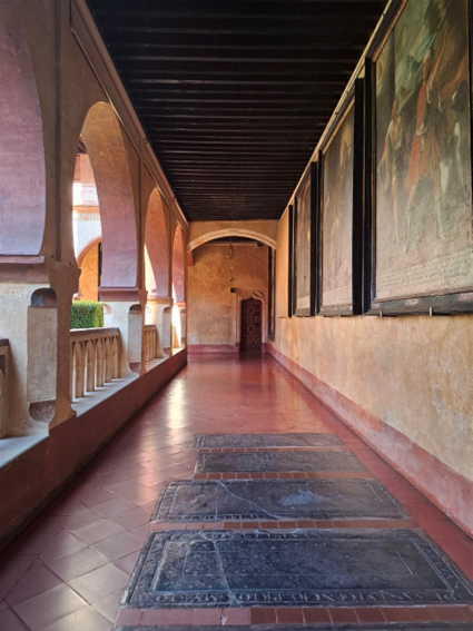 Os entra e sai eram tão rápidos que acabei curtindo mais o corredor (com seus quadros enormes e jazigos dos principais religiosos que ali viviam) e o claustro que era lindo (mas ao qual não se tinha acesso porque os portões estavam chaveados).