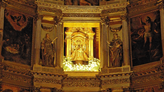 A visita terminava com a ida ao “Camarín”, pequena saleta que está atrás do altar principal da igreja do monastério. Lá, um dos oito religiosos que cuidam deste patrimônio, contou a história de Nossa Senhora de Guadalupe, explicando que a imagem é preta, ainda que a santa que ela representa não o fosse. Segundo o padre, era uma mulher morena por causa do sol da Extremadura e como essa informação se repetia de geração a geração, a sua imagem foi sendo escurecida pelos seus crentes até se tornar, com o tempo, negra.
