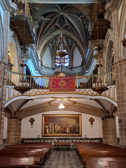 A igreja chega a ser singela diante do altar tão majestosamente dourado. Nos fundos, no mezanino (acho que não se usa para igrejas esta nomenclatura, mas não conheço a certa), há dois grandes órgãos.