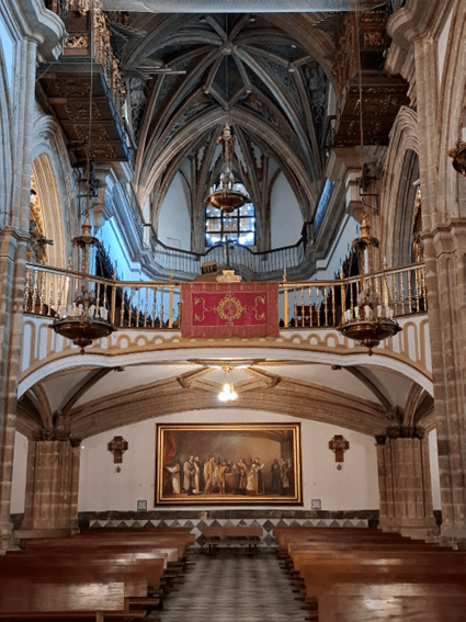 De longe, a Santa María Guadalupe que acabáramos de ver de perto, no Camarín, parecia até pequeneninha, como você verá leitor, na foto que se segue, onde ela ocupa a posição central na segunda fileira de baixo para cima.