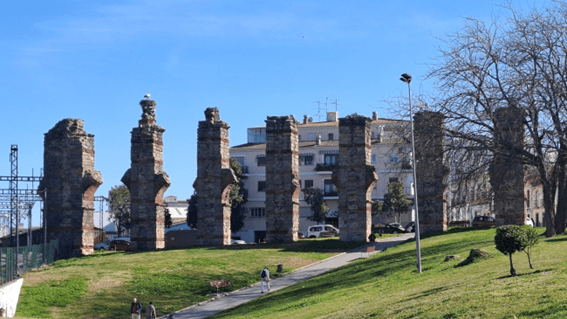 Por fim, para concluir nossa visita ao mundo romano de Mérida, fomos conhecer o aqueduto, que remanesce ereto cortando a paisagem contemporânea.