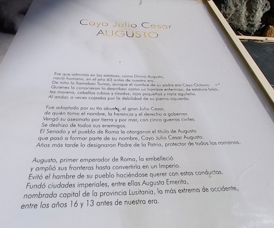 Além de Otávio Augusto, em Mérida, as homenagens são várias para Cayo Julio Cesar Augusto que parece ter sido um imperador de grande destaque.