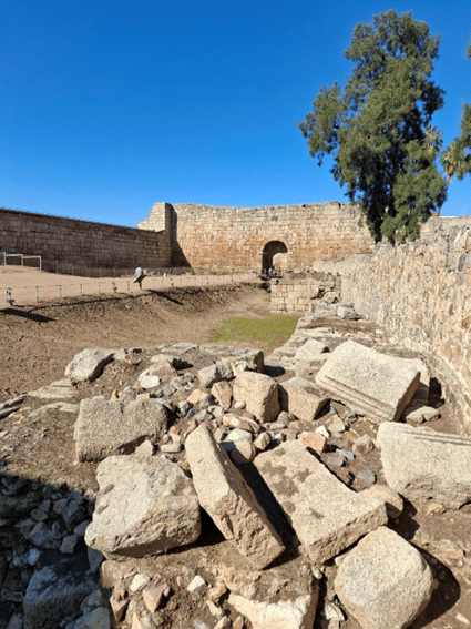 Entre o circo e o anfiteatro, algumas oliveiras estavam lá para nos fazer lembrar que estávamos no domínio climático do mediterrâneo. Aliás, este foi um ponto alto da visita à Extremadura: há olivais por todo lado, na área rural e muitas espécies adornado as cidades e os quintais.