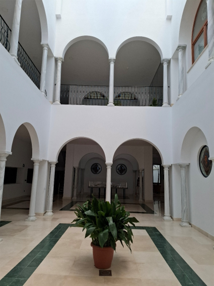 Entramos e uma jovem simpática foi informando que era o prédio do Ayuntamiento e que podia ser visitado. Havia uma pequena exposição de fotos, sempre duas a duas, mostrando a Palos fotografada por um estrangeiro na década de 1950 e a atual. Nas fotos do passado, muitas crianças, nas ruas de hoje não vi nenhuma.